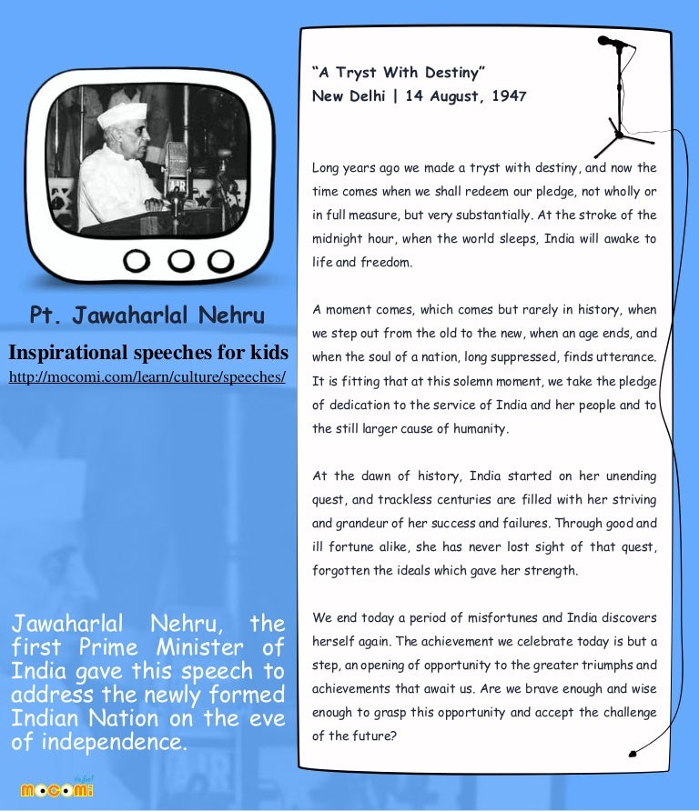 Nehru Independence Speech : Jawaharlal nehru, gave this following speech as india's first prime minister to the constituent assembly in though this speech is full of ideals and embellishments to inspire a nation, about to.