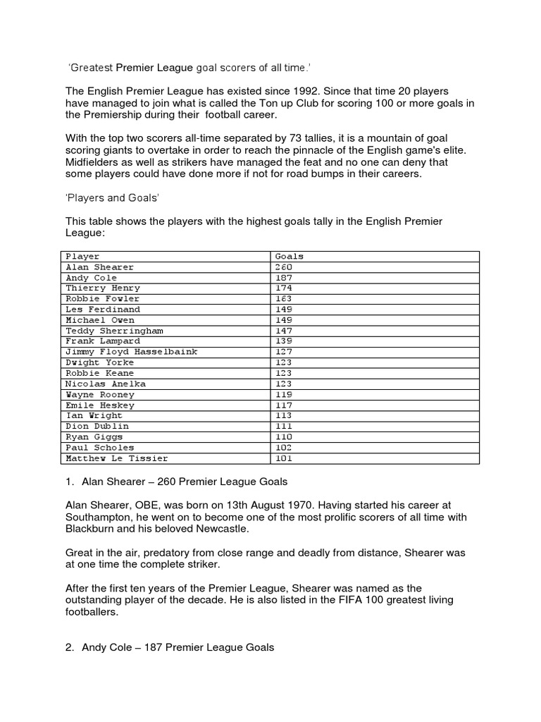 Top Goal Scorers All Time Premier League : November 28, 2018 by david nugent.